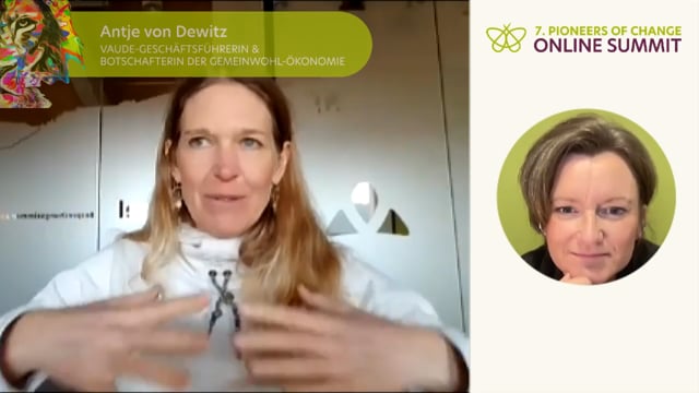 Außerdem hat VAUDE eine Gemeinwohl-Bilanz erstellt und veröffentlicht. Antje von Dewitz setzt sich zudem als Botschafterin für die Gemeinwohl-Ökonomie ein. Gemeinsam mit Christian Felber, dem Initiator der Bewegung, erreichte sie, dass sich der Europäische Wirtschafts- und Sozialausschuss 2015 für das Gemeinwohl-Ökonomie-Modell aussprach und dafür plädiert, dass dieses „sowohl in den europäischen als auch in die einzelstaatlichen Rechtsrahmen integriert werden“ sollte. Sie entwickelte maßgeblich das Textilsiegel Grüner Knopf mit.