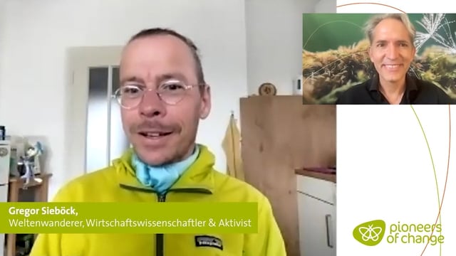 Gregor Sieböck ist "Weltenwanderer" mit Fokus auf der Gegenwart. Er lässt den Weg im Gehen entstehen und hat so über 20.000 Kilometer zu Fuß zurückgelegt. Er war als Schokoladen-Weltreisender für die Zotter Schokoladenmanufaktur über ein Jahr lang zu Bio- und Fairtrade-Bauern in Europa, Afrika und Südamerika unterwegs.